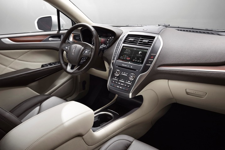 Dentro de la MKC, los botones reales y perillas proporcionan un control táctil de funciones climáticas y multimedia. Asientos de cuero y paneles y molduras de madera real, completan un impresionante ambiente de la cabina. Una pantalla táctil está en el medio de la consola central.